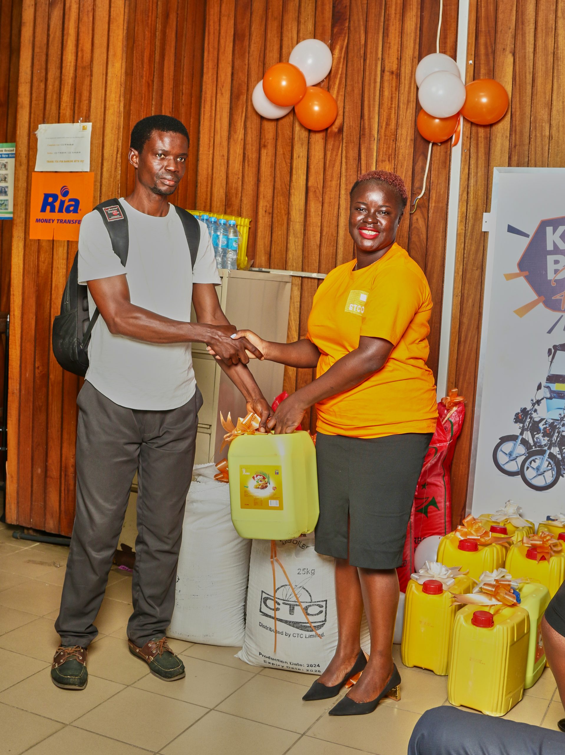 The presentation ceremony was held at the bank’s head office, where 16 winners received various cooking items, including bags of rice and gallons of oil. Due to the geographic diversity of the campaign, some winners could not attend in person and will receive their prizes later.