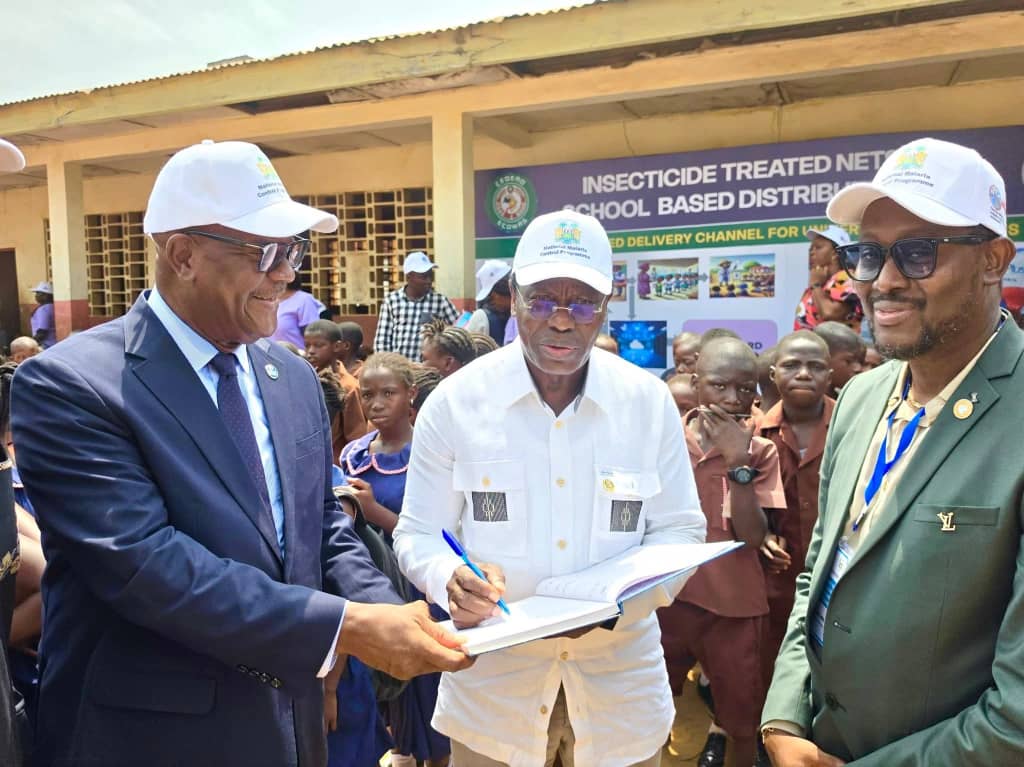 The Minister of Health, Dr. Austin Demby, joined international partners to distribute insecticide-treated mosquito nets to Pupils at the Aberdeen Municipal Primary School.