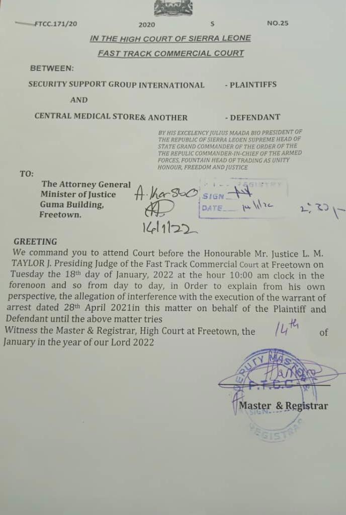 High Court Judge L. Taylor has issued a subpoena for Anthony Brewah, Attorney-General and Minister of Justice to appear before him on allegation of interference with the execution of a warrant of arrest.