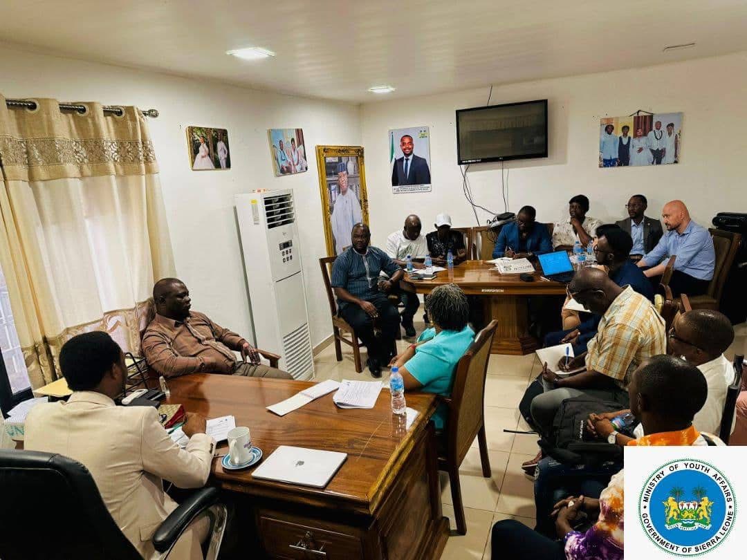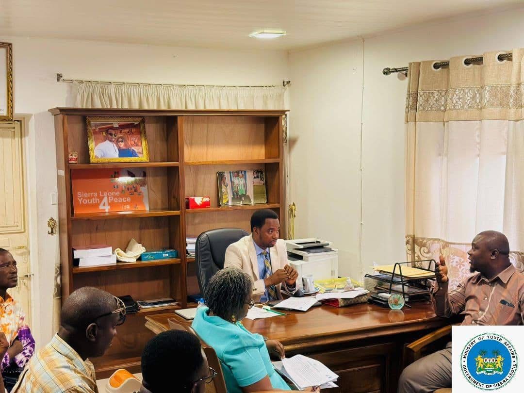 Minister of Youth Affairs, Mr. Ibrahim Sannoh, met with representatives from the United Nations Development Programme (UNDP) and the United Nations Capital Development Fund (UNCDF) to discuss a peacebuilding initiative targeting young motorbike riders in Sierra Leone.