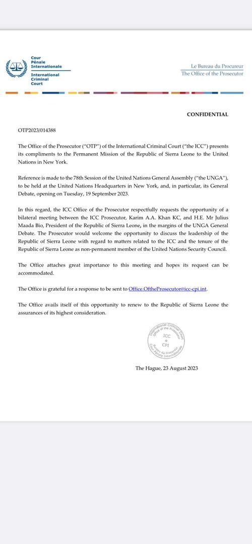 The Ministry of Information and Civic Education has released the official memo inviting President Julius Maada Bio to the ICC in The Hague.