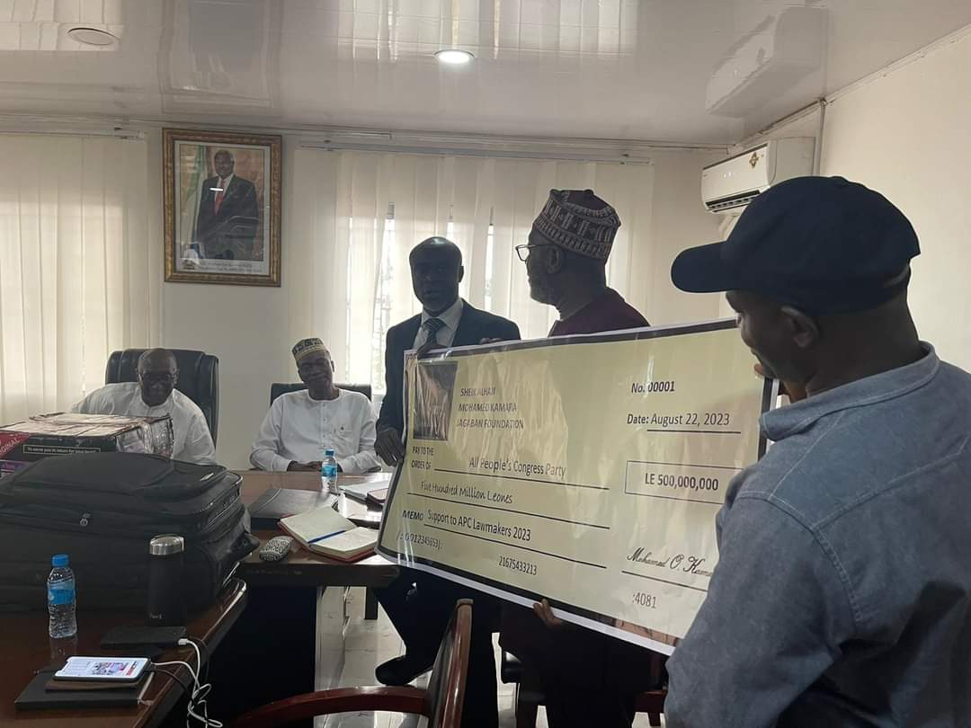 Sheik Alahaji Mohamed Kamara, popularly recognized as Money Jagaban, has generously donated a sum of Five Hundred Million Old Leones (Le500,000,000) to the APC Party.