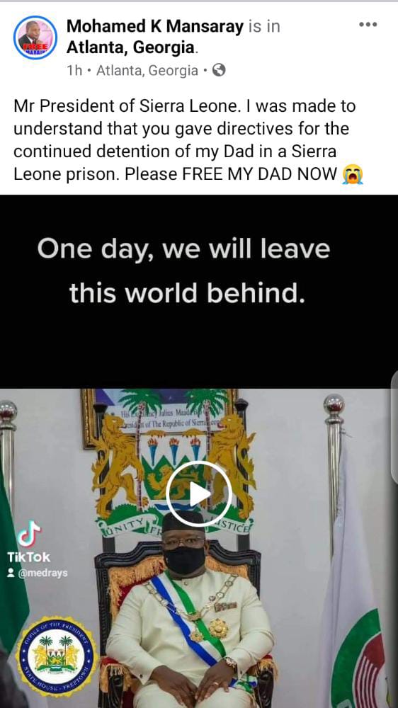 “Mr. President of Sierra Leone. I was made to understand that you gave directives for the continued detention of my Dad in a Sierra Leone prison,” she said.