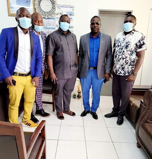 In his quest for familiarizing and creating a good working relationship with relevant Ministries, Departments and Agencies, the Ambassador for Entertainment and Investment Kao Denero and a cross section of his Board Members today 8th July 2021 paid a courtesy visit on the Minister of Trade and Industry Hon. Dr. Edward Hinga Sandy at his 6th floor Youyi Building Office in Freetown.
