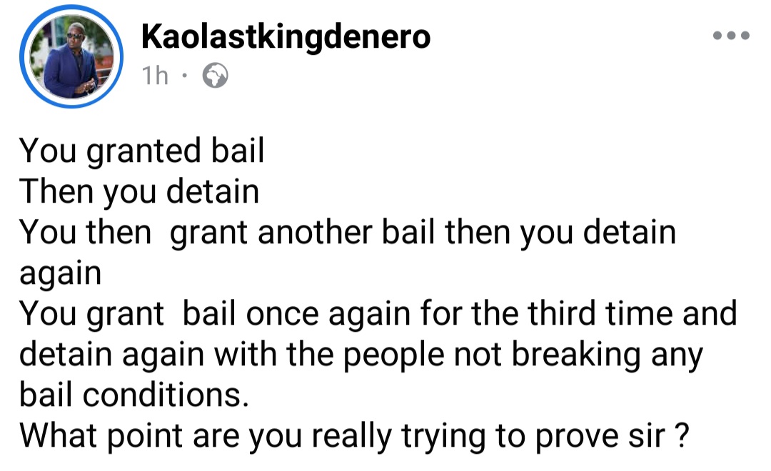 He pointed to the repeated pattern where bail is granted and then followed by detention, even though no bail conditions appear to have been broken. He questioned why this continues to happen, especially when there’s no sign that the bail terms have been violated.