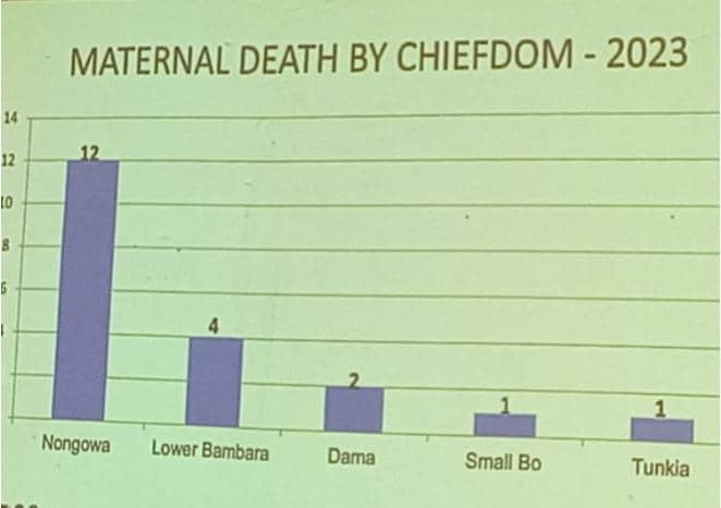 Dr. Grant, during his presentation at the stakeholders’ engagement, highlighted that most maternal deaths in the district occurred among women aged 20 to 29. He emphasized that home deliveries and delays in referrals to major government health facilities were the primary causes of the high maternal mortality rate. In 2022, 42 women died during childbirth in Kenema, with specific chiefdoms like Lower Bambara and Nongowa recording the highest number of cases. Between January and September 2023, 20 maternal deaths were reported, with April seeing the highest incidence.