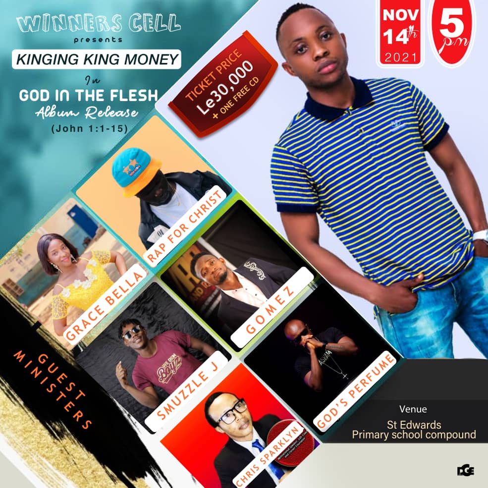 The Hardcore Hip-hop and RNB fusion Gospel Album titled “GOD IN D FLESH” shall be launched on Sunday November 14th, 2021 at Saint Edwards Primary School Compound in Freetown at 5 p.m prompt.