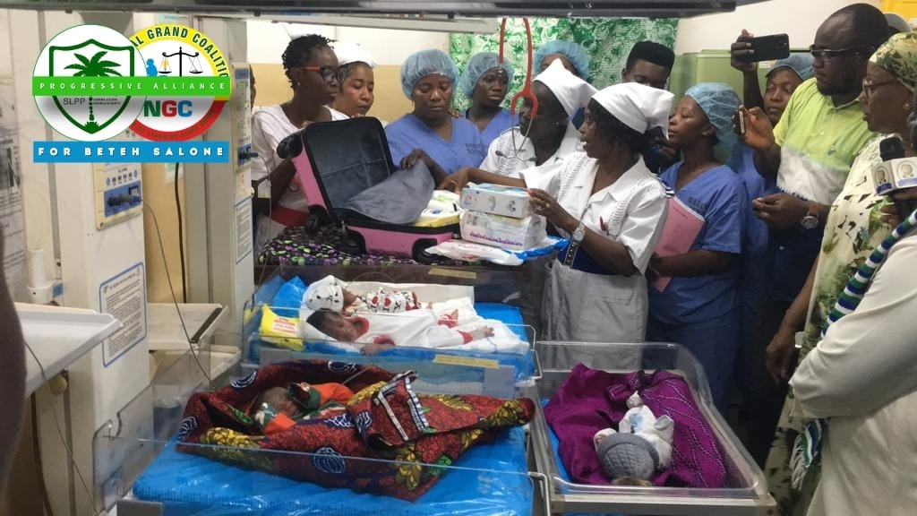 On the gracious occasion of Independence Day, Hon. Yumkella, representing President Bio and the First Lady Madam Fatima Bio, visited the Princess Christian Maternity Hospital (PCMH) at Fourah Bay Road with Social Welfare Minister Madam Baindu Dassama to see and welcome new-born babies.