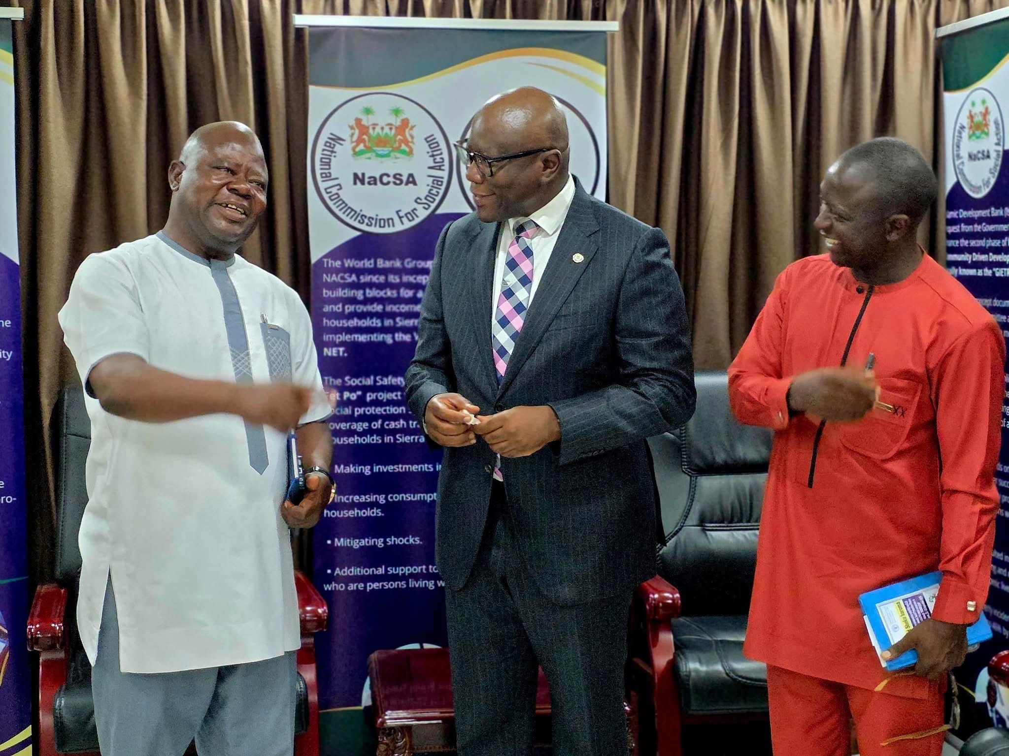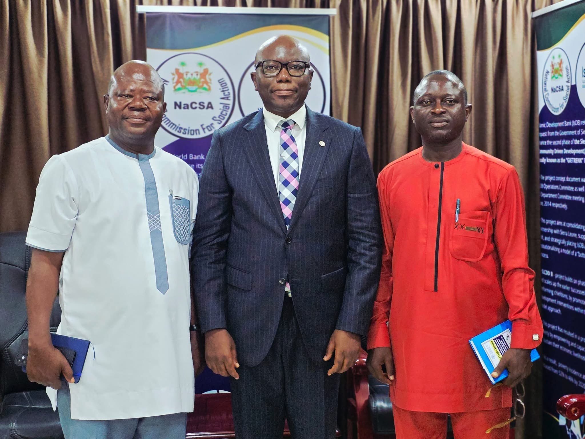 The Director General of the National Social Protection Authority (NSPA), Mr. Abu Bockarie Kokofele, on Tuesday, 6th December, 2026, formally bid farewell to the Commissioner of the National Commission for Social Action (NaCSA), Ambassador Ernest Mbaimba Ndomahina, marking the end of a five-month period during which NaCSA hosted and supported the newly established Authority.