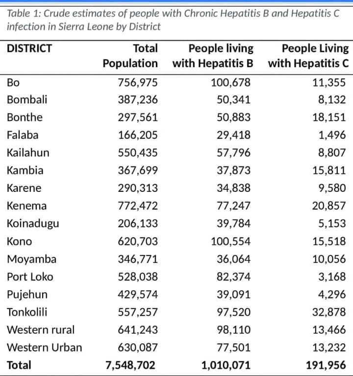 Newly released health data to mark World Hepatitis Day has revealed that Bo, Kono, Tonkolili, Port Loko, and the Western Rural District carry the highest burden of Hepatitis B in Sierra Leone.