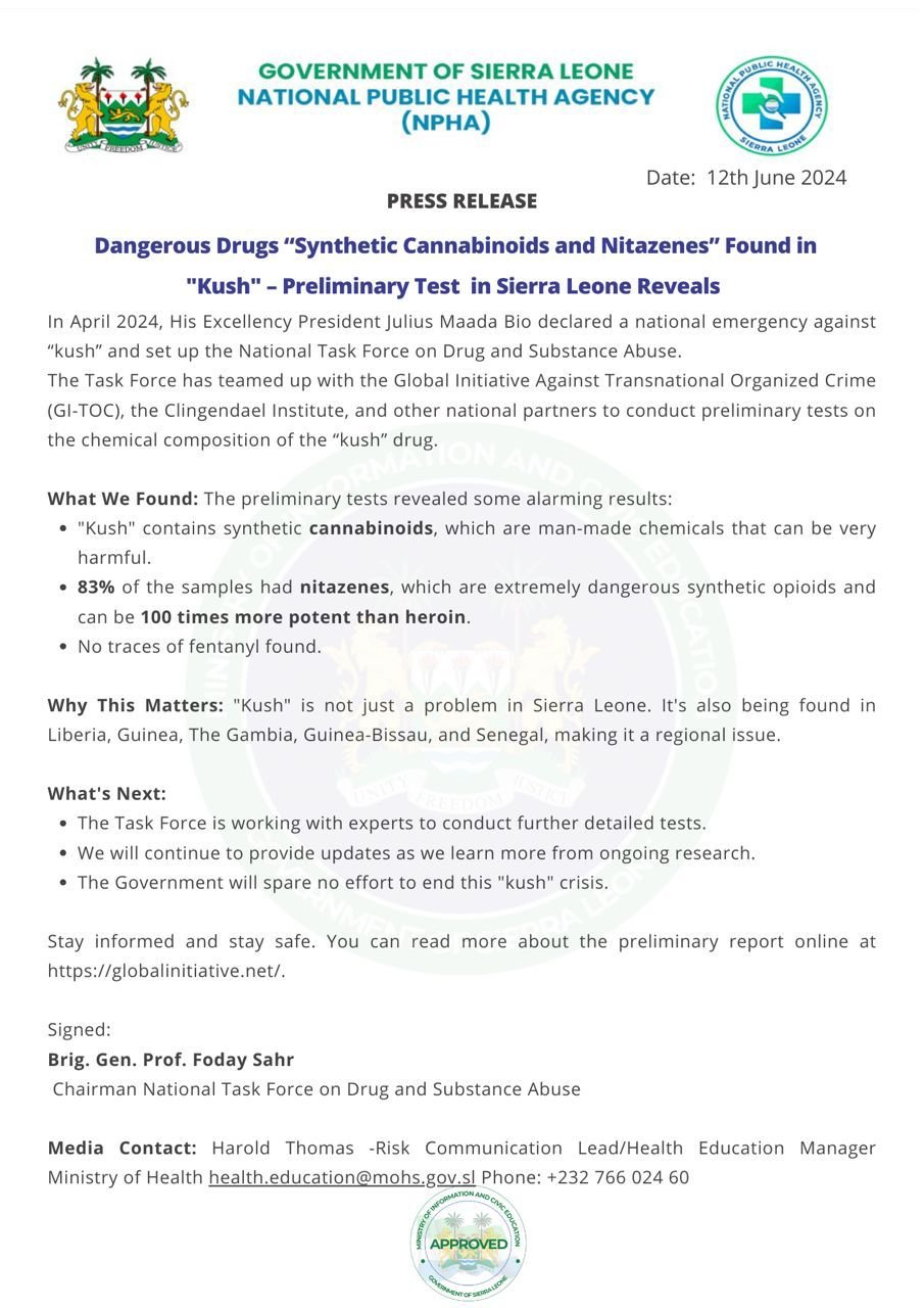 While the tests did not detect fentanyl, another dangerous synthetic opioid, the presence of nitazenes necessitates further investigation. The Task Force, led by Chairman Brig. Gen. Prof. Foday Sahr, has pledged to continue collaboration with experts for a more comprehensive analysis.