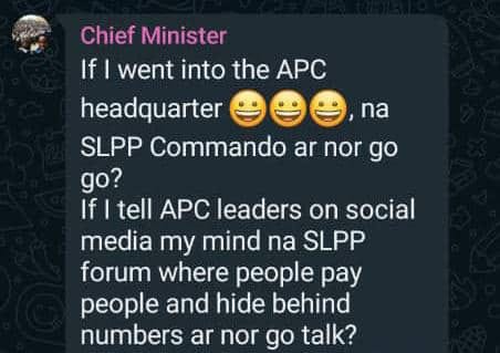 A leaked screenshot of a private WhatsApp group chat has revealed internal strife within the Sierra Leone People’s Party (SLPP).