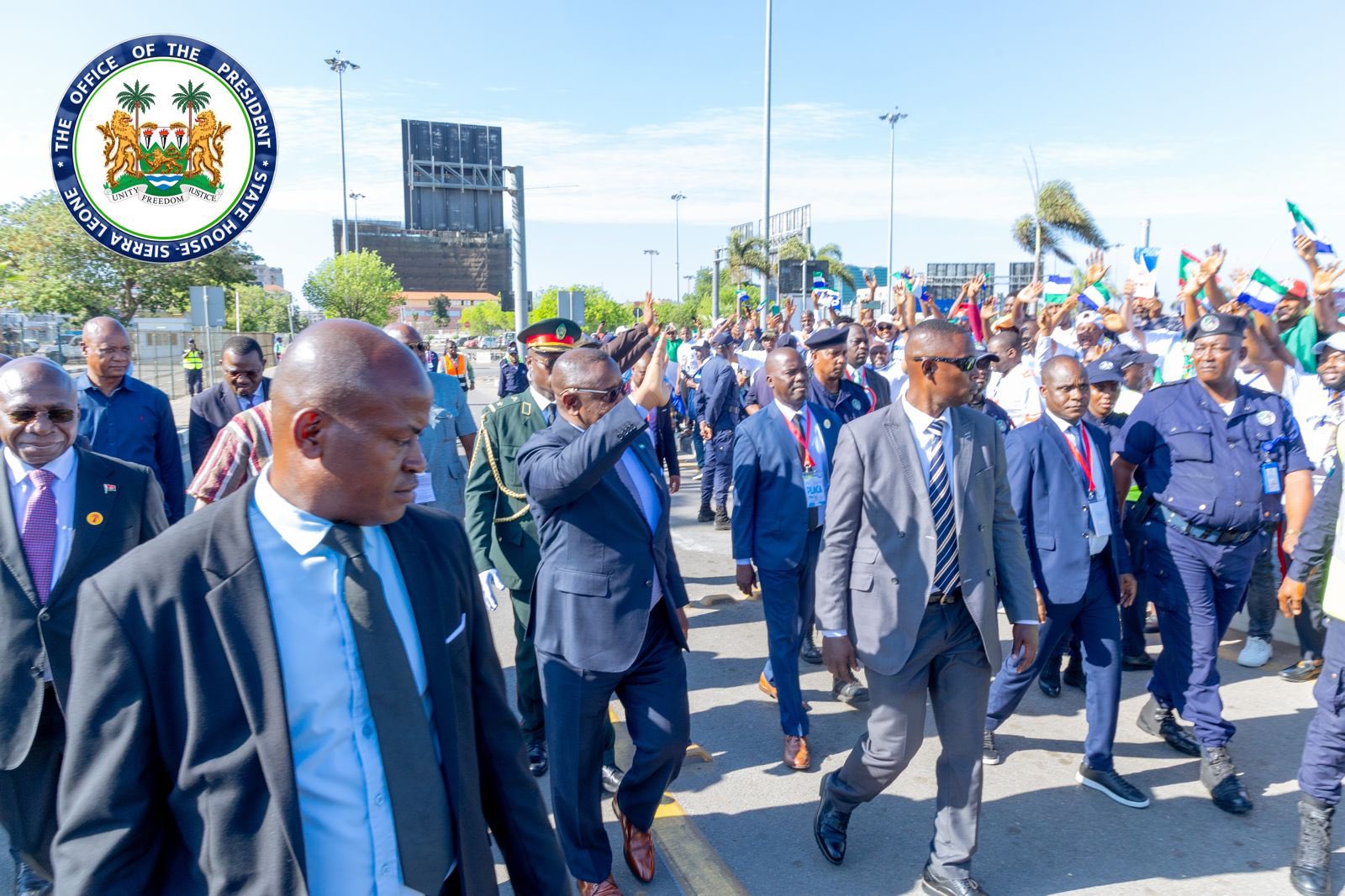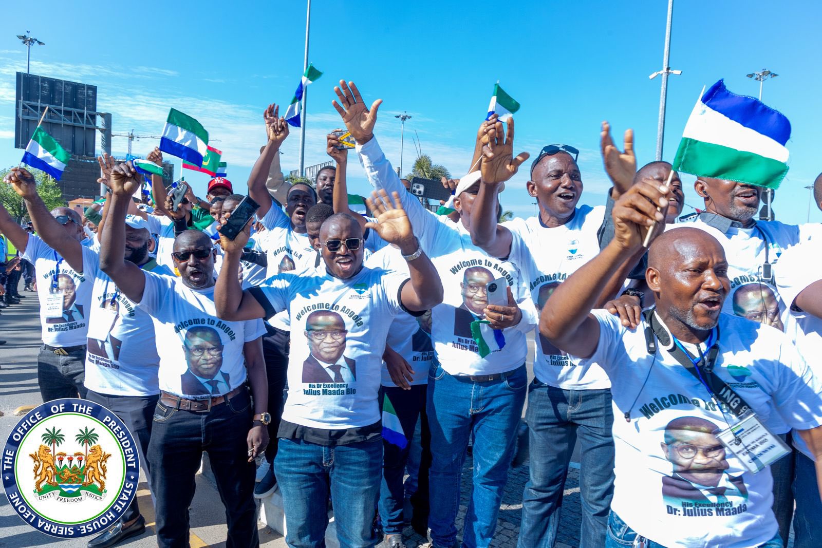 President Dr. Julius Maada Bio, President of Sierra Leone and Chair of the ECOWAS Authority, received an overwhelming and emotional welcome in Luanda as hundreds of Sierra Leoneans living in Angola turned out in large numbers to greet him upon his arrival for the Seventh European Union–African Union (EU–AU) Summit.