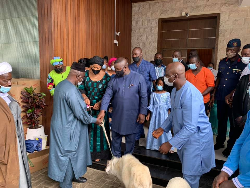 To mark the celebration of Eid Adhar the president and first Lady on Monday 19th July 2021 donated sheep and other food items to imams at the state lodge.