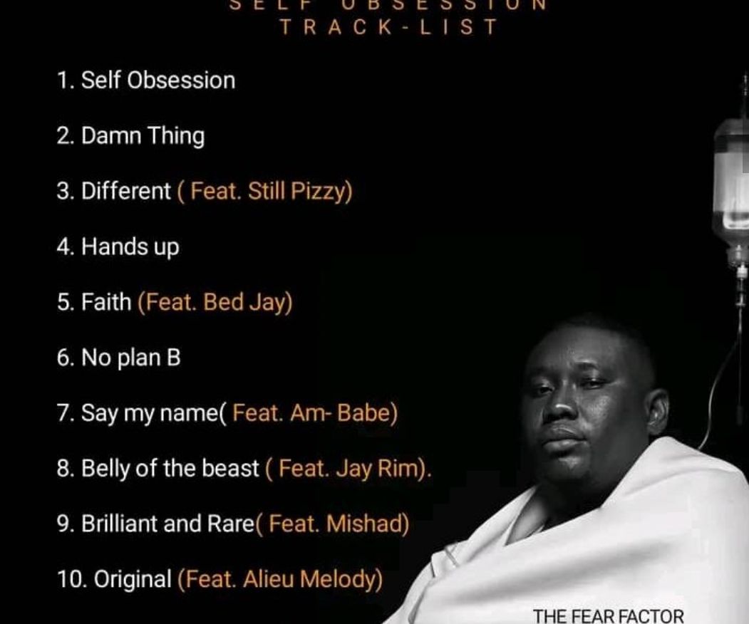 Medee T composed a total of ten tracks in the “Self Obsession” album, and did six collaborations namely; “Different” together with Still Pizzy, “Original” featuring Alieu Melody, “Brilliant and Rare” collaborating with Mishad, “Belly of the Beast” featuring Jay Rim, “Say my name” together with Am-Babe, and “Faith” a collaboration with Bed Jay.