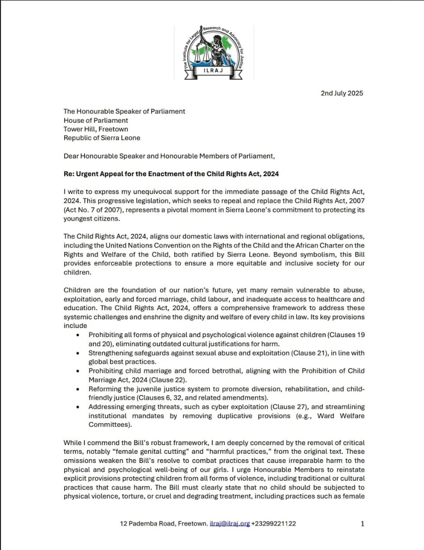 Parliament is expected to consider the final version of the bill soon. Advocates say the decision could shape the future of child protection in Sierra Leone.