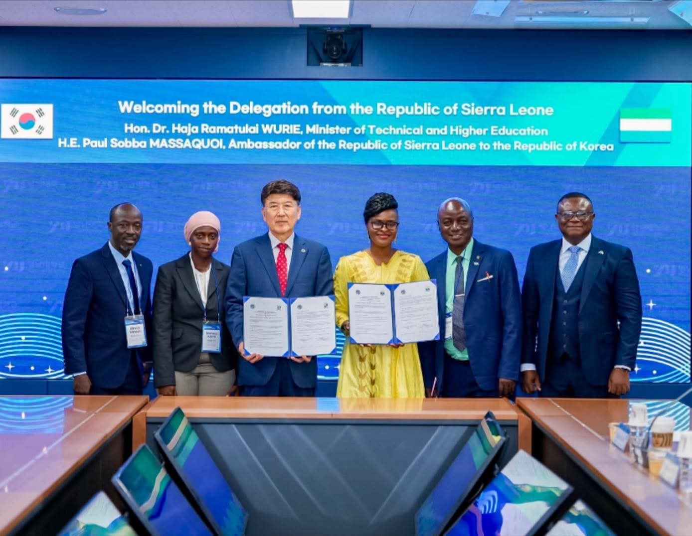 The Minister of Technical and Higher Education, Dr. Haja Ramatulai Wurie, has signed two Memoranda of Understanding (MoUs) linking South Korea’s Yeungnam University with Sierra Leone’s Milton Margai Technical University (MMTU)and Eastern Technical University (ETU).