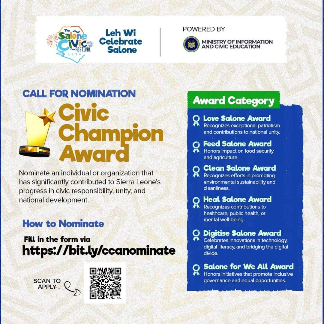 The Civic Champion Awards provide a unique platform to acknowledge the extraordinary efforts of those shaping the nation’s future. Citizens are encouraged to submit nominations and join in celebrating Sierra Leone’s champions.
