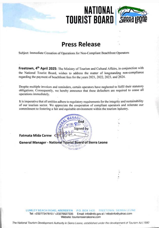 The release also appreciate the cooperation of compliant operators and reiterate the Ministry commitment to fostering a fair and equitable environment within the tourism industry.