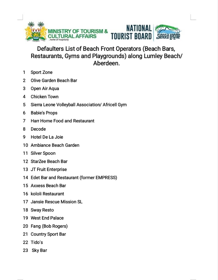 The Ministry of Tourism and Cultural Affairs, in conjunction with the National Tourist Board in a press release has threatened to close several beach bars for failing to meet criteria of operation with immediate effect.