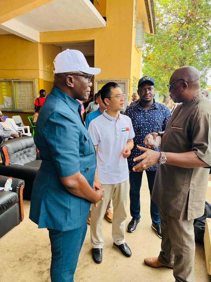 Commissioner of National Commission for Social Action (NaCSA), Ernest Mbaimba Ndomahina together with the Chinese Ambassador to Sierra Leone Wang Qing visited the Bo Government Secondary School in Bo.