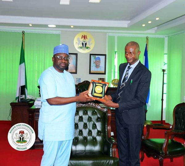 A team from the National Disaster Management Agency (NDMA) headed by the Deputy Director-General, John V. Rogers, paid a courtesy call on the Nigerian High Commissioner, Henry John Omaku to introduce the NDMA to the Embassy and explore possibilities of support and partnership between NDMA, the Nigerian Embassy in Sierra Leone and the National Emergency Management Agency.