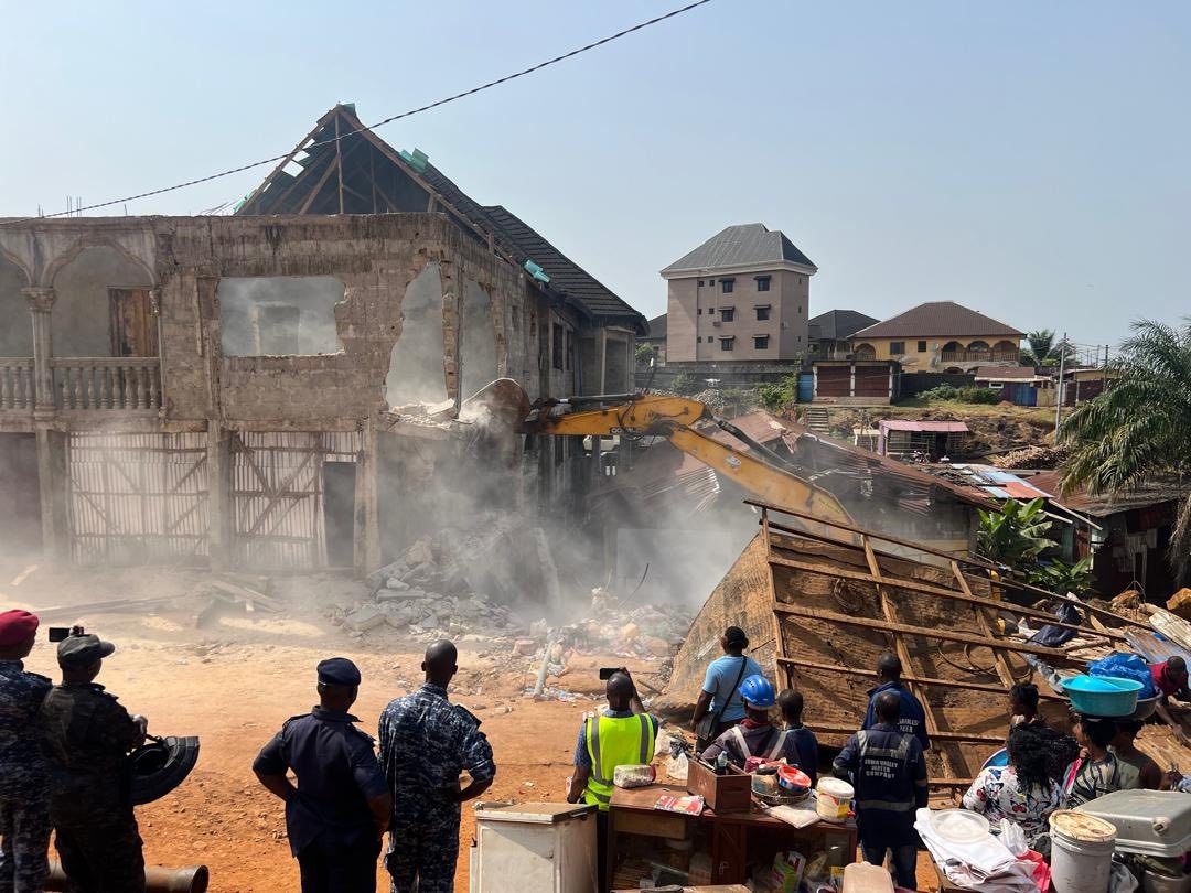 The demolition targeted a two-storey building, two single-storey buildings, and several makeshift structures that were illegally constructed directly on top of the main pipeline. These structures caused significant damage to the pipeline, resulting in the loss of millions of litres of treated water and leading to acute water shortages across Freetown over the past three weeks.