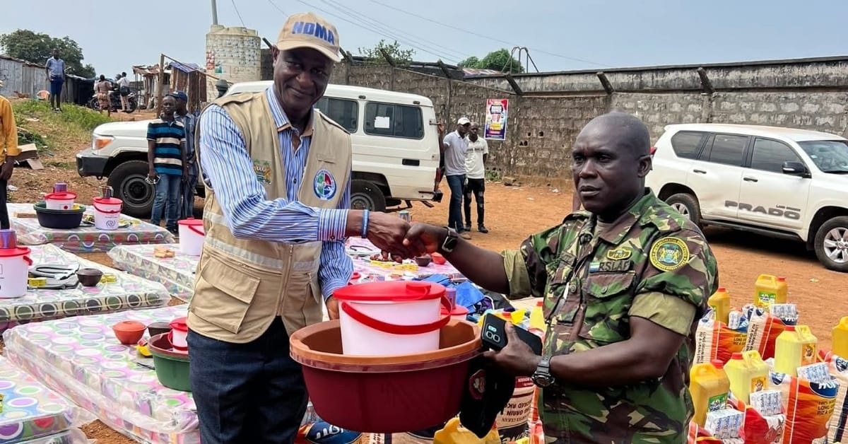The National Disaster Management Agency (NDMA) has provided essential relief items to victims of a recent fire incident at Tank Yard Field, behind the Presidential Lodge at Hill Station, Freetown.