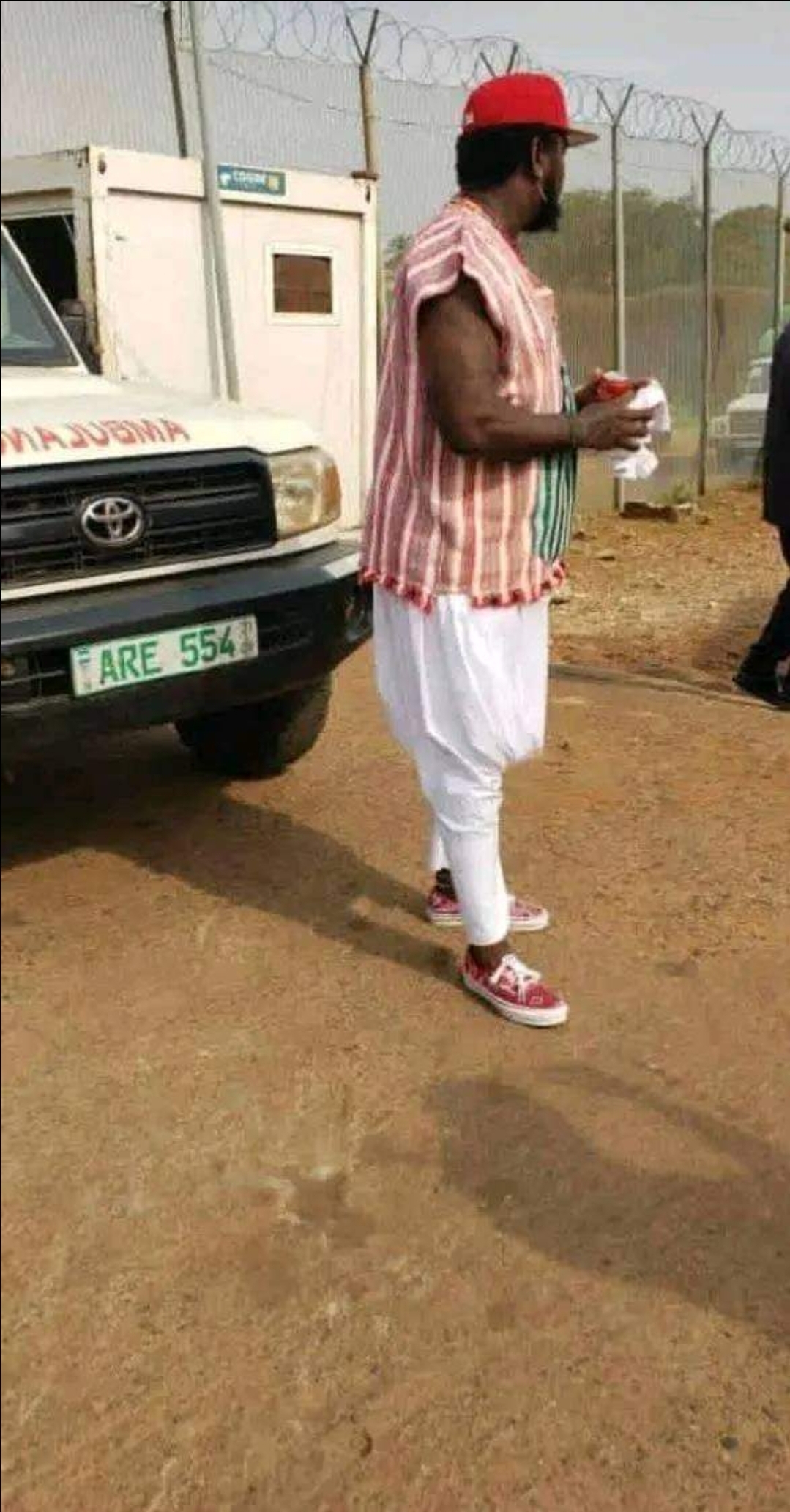 Popular Sierra Leonean Rapper and the CEO of Red Flag Muzik Alhaji Amadu Bah, popularly known as Boss La, has been spotted outside jail for the first time after his first court appearance looking all good in a red and white African attire.