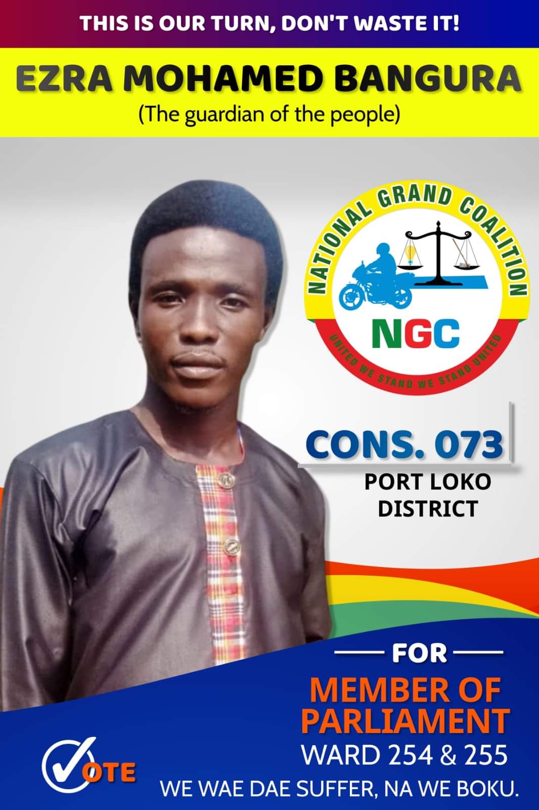 Ezra M. Bangura, the Parliamentary candidate of the National Grand Coalition (NGC), has confirmed that he has withdrawn his candidacy from the bye elections in Constituency 073, Port Loko District.