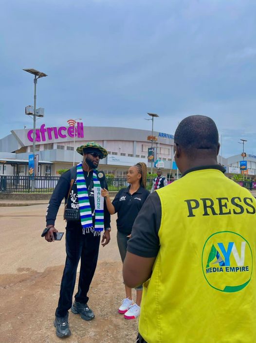 The superstar who just landed few minutes ago was surprisingly interviewed by one of AVY’s most proficient journalist, Michelle Marina Jaward. When he was interviewed the reasons to his visit to Sierra Leone, he made it clear that he is here on collaboration with the AYV and would be visiting the housemates show house this Saturday and he has gotten something to display to them in relation to his profession as a Disc Joker.