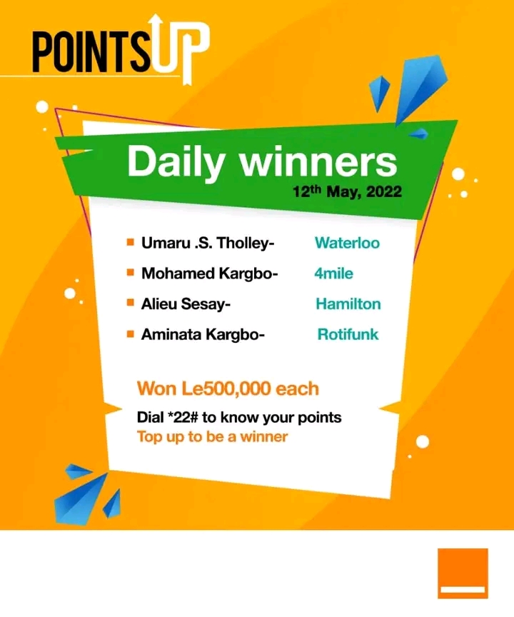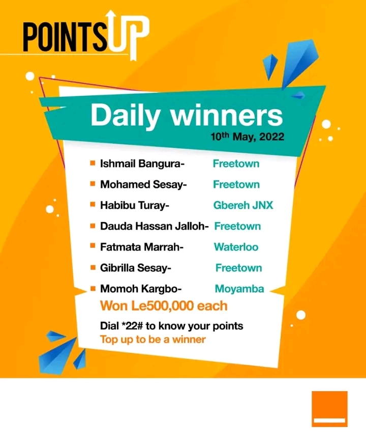 Customers can gain points any time they top -up from 2000 Leones and above. The Points generated can give subscribers a chance to win a car and cash prizes daily.