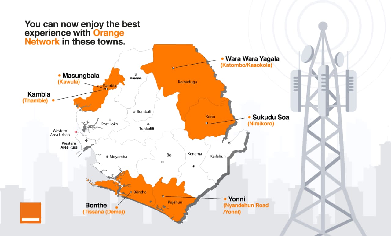 As part of its efforts to achieve digital inclusion, Orange SL has expanded it telecommunications network coverage to aid the acceleration of 4G Coverage in Six major District towns in Sierra Leone.