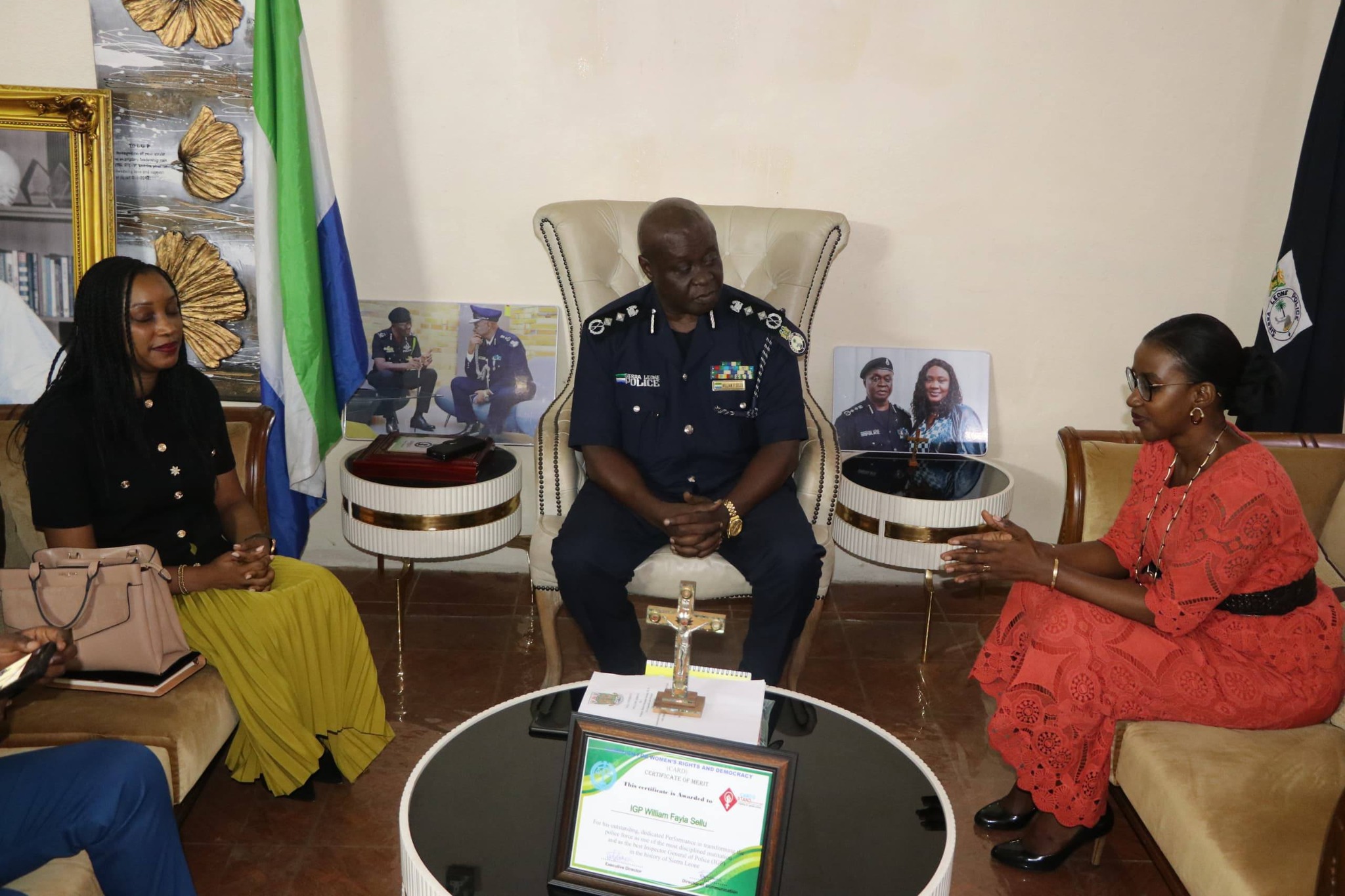 The newly appointed Chief Executive Officer of Orange Sierra Leone, Madam Aicha Toure, has paid a courtesy visit to the Inspector General of Police (IGP), Mr William Fayia Sellu, at his office at the Kingtom Senior Officers’ Mess, reaffirming the company’s commitment to strengthening collaboration with the Sierra Leone Police (SLP).