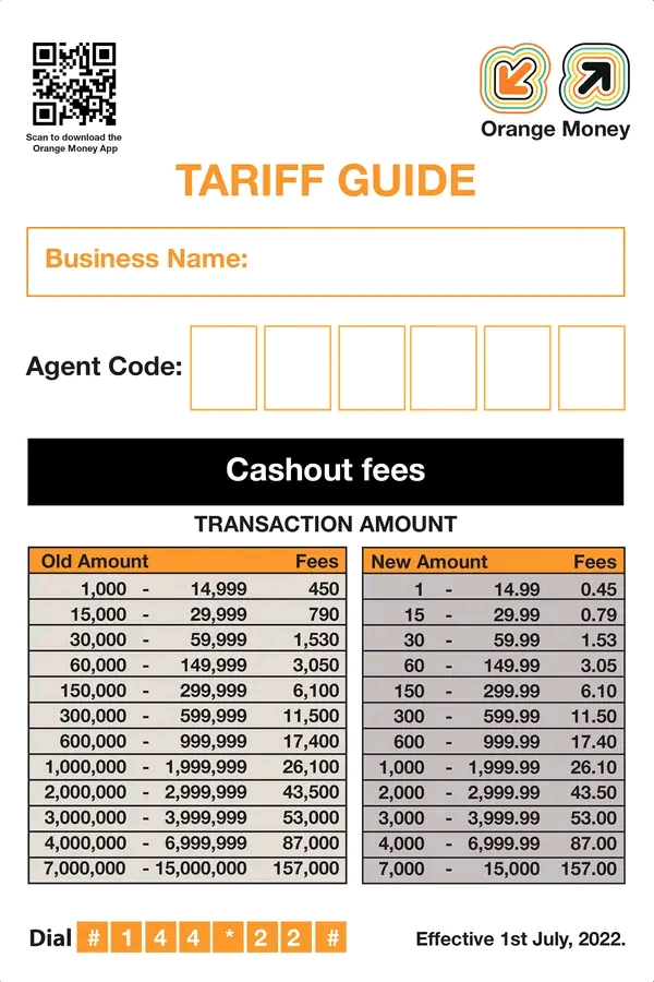Here is an Orange Tariff Guide. Below is what the new amount and fees will look like after the Redinomination of the Leones.
