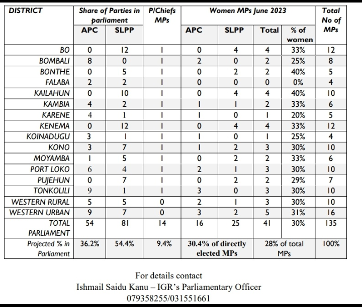 The IGR’s analysis also highlights a positive development in terms of gender representation in parliament. It reveals that the participation of women has increased by 15%, with both Kailahun and Bonthe Districts recording a 40% representation of women. This significant boost in female participation is seen as a positive step forward for the political landscape of Sierra Leone. Furthermore, it is noted that women account for 30.4% of the 135 directly elected members of parliament.