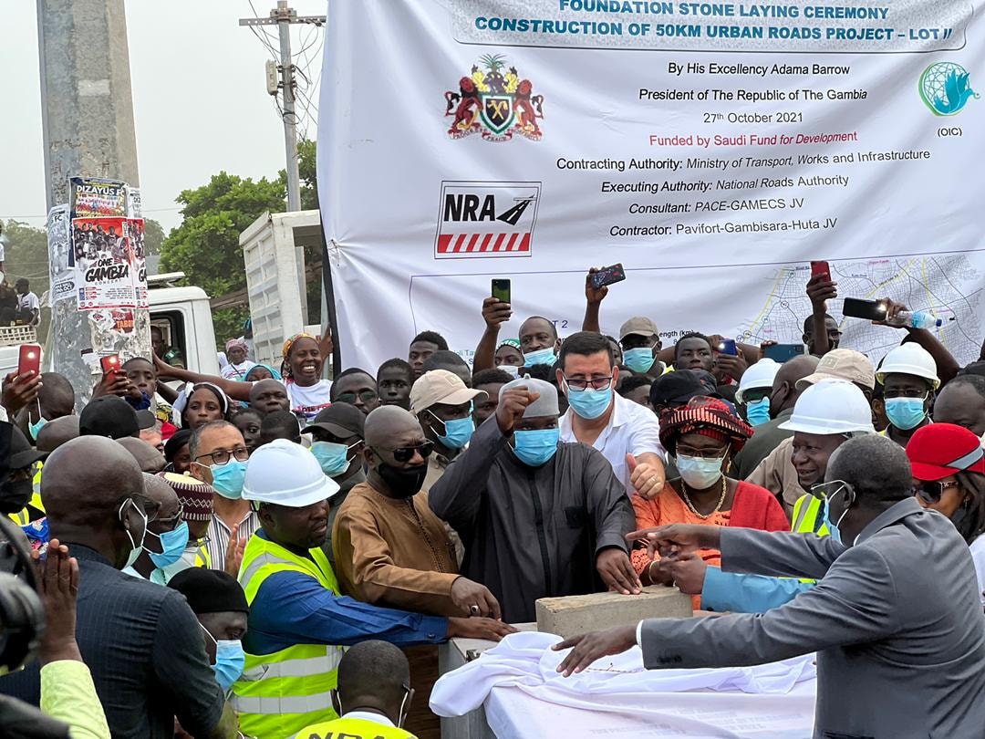 President Barrow disclosed that the project duration is 14 months and that twenty (20) roads will be constructed which will constitute the 50km Roads Project.