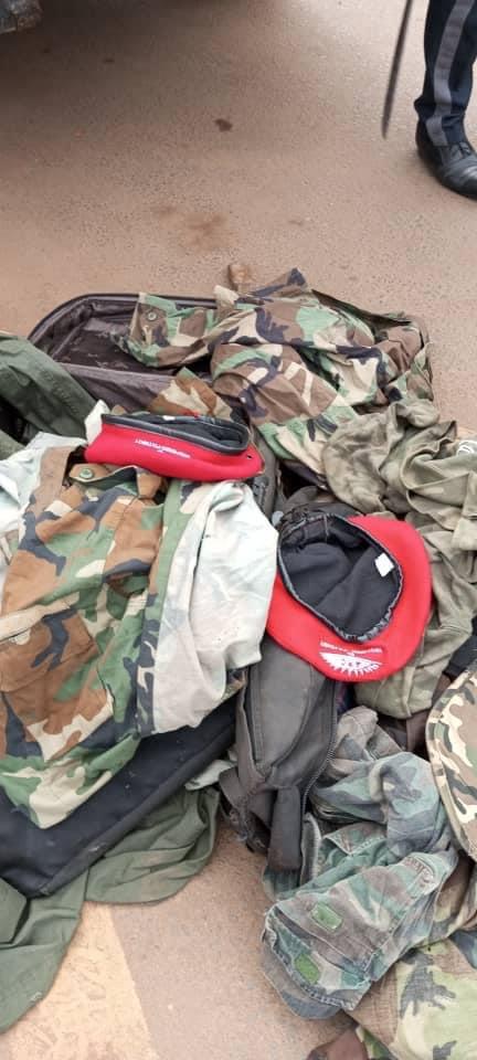 Police discovered military uniforms, boots and machetes in the room of Mansaray. Red berets with the main opposition All People’s Congress (APC) logo were also found at the scene.
