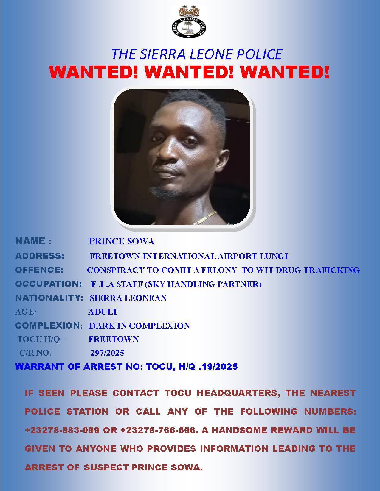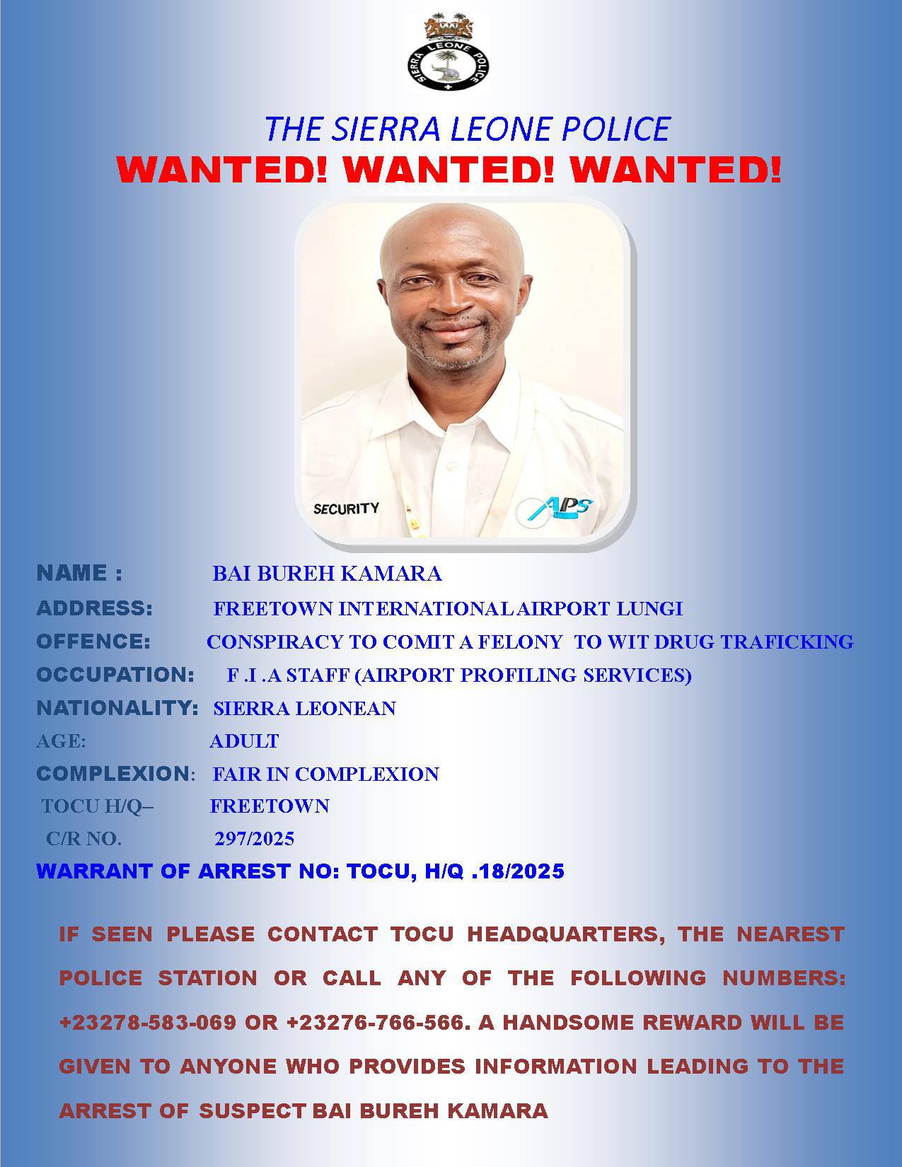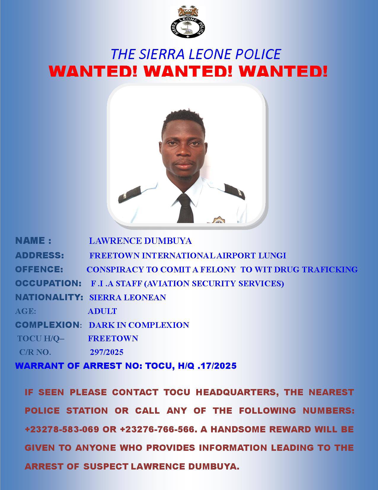 The Sierra Leone Police (SLP) has declared three former employees of the Freetown International Airport, Lungi, wanted in connection with a drug trafficking conspiracy.