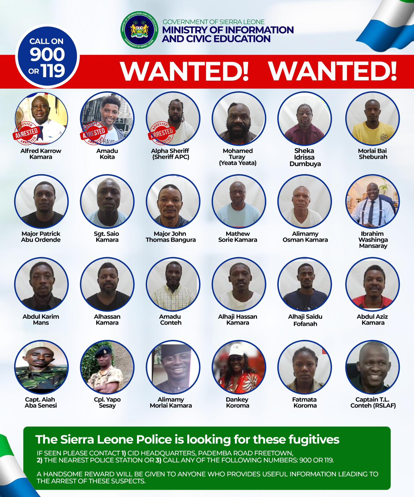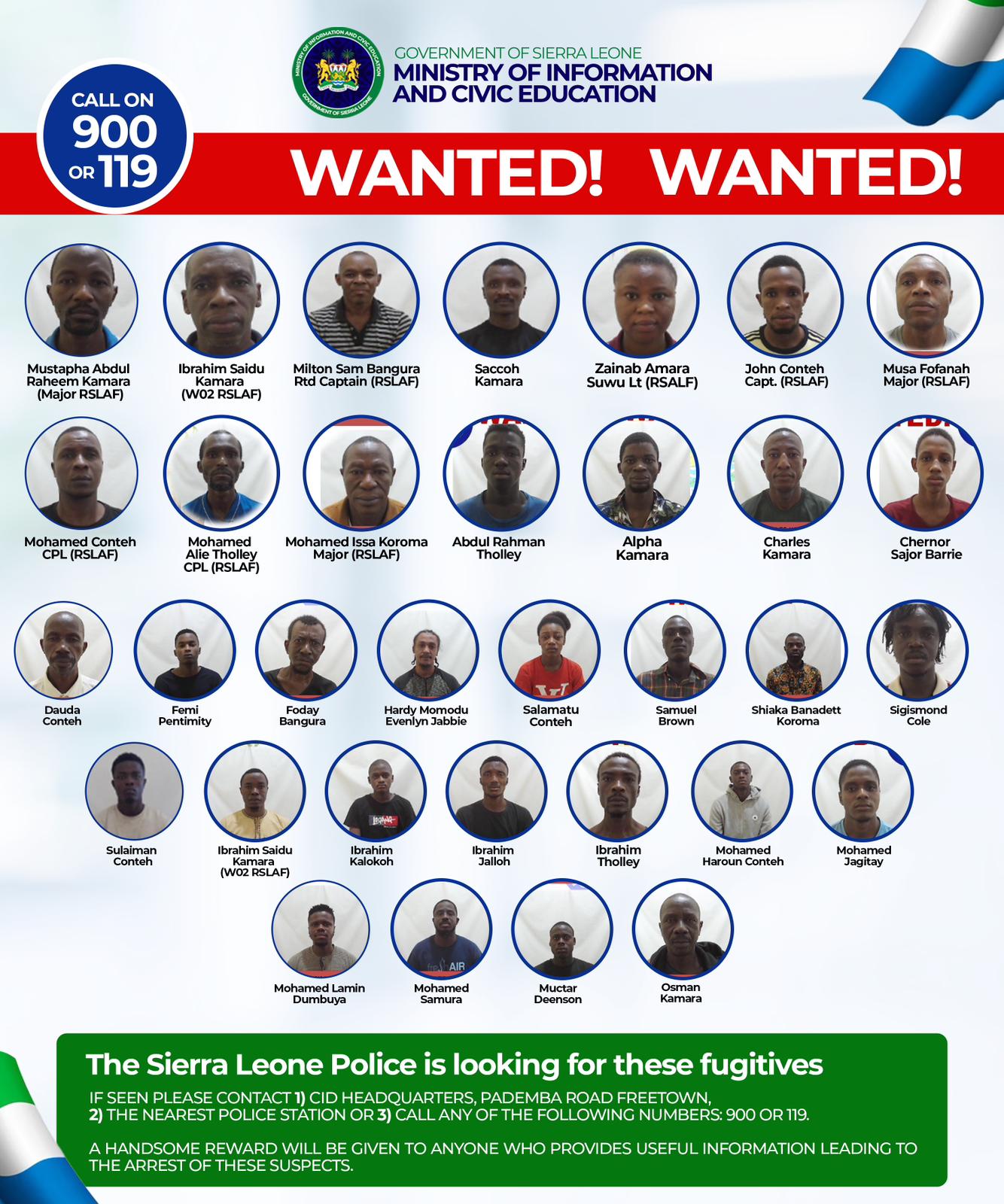 The Sierra Leone Police has released an updated list of wanted fugitives of the November 26th failed coup attempt.