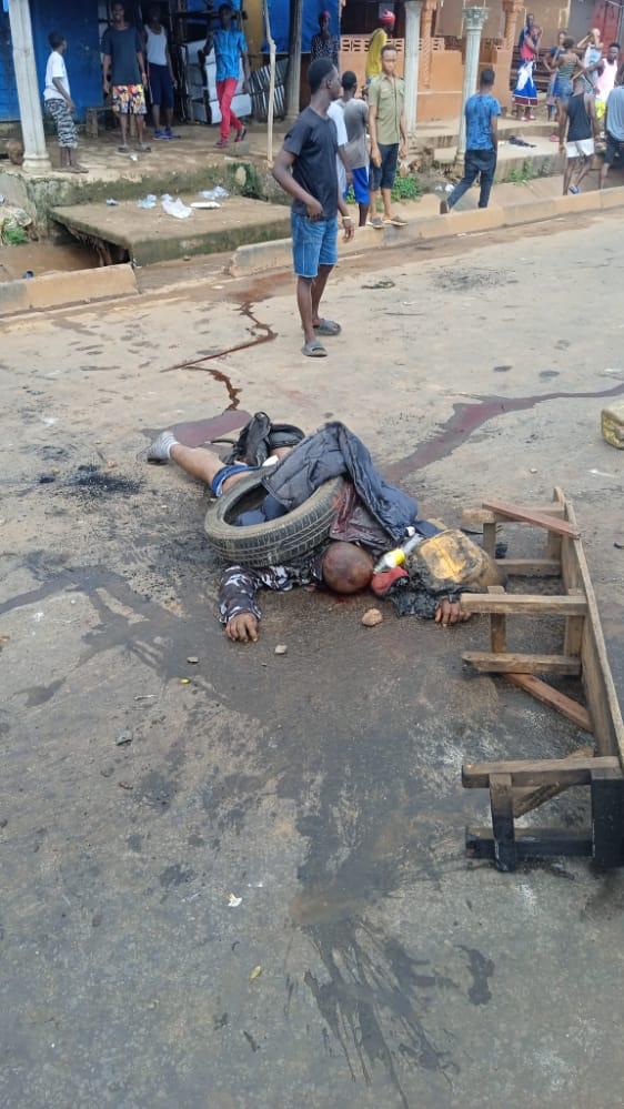 As the August 8-10 planned Demonstration rocks Sierra Leone a yet-to-be-identified police officer has been seen lifelessly on the street in the eastern part of Freetown, as onlookers said he was beaten to death by Angry protesters.
