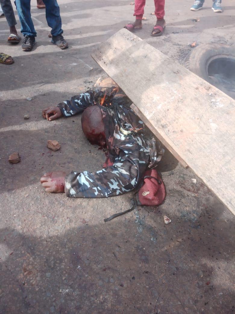 A Police Officer has been seen laying lifelessly on the street of Freetown, as it was alleged that he was beaten to death by angry protesters in the wake of the August 8- 10 planned demonstration.