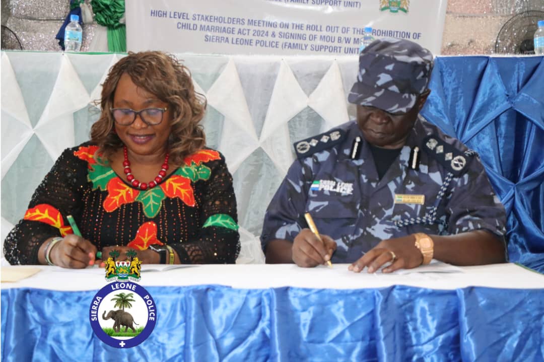 Inspector General of Police, Mr. William Fayia Sellu, highlighted the significance of the MoU in advancing Sierra Leone’s efforts to eradicate early child marriage, aligning with the First Lady’s vision and national priorities.