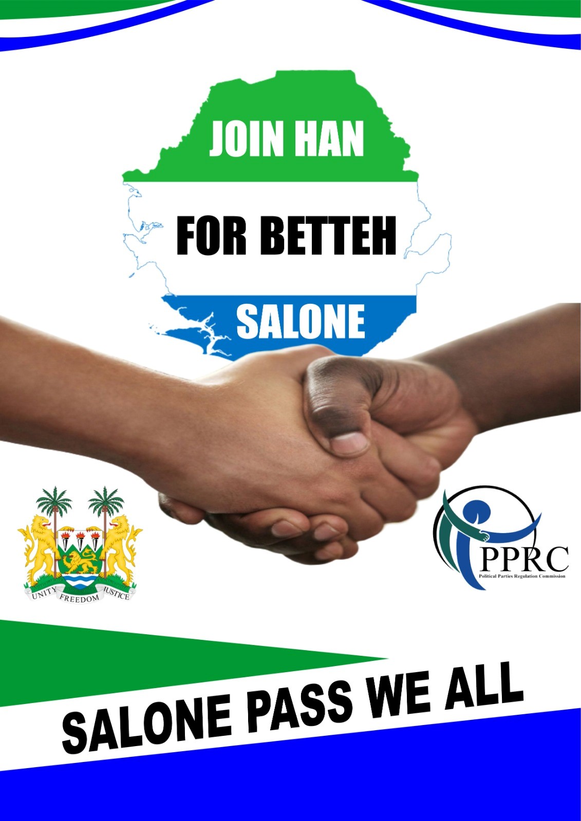 The PPRC in their published theme has got the Map of Sierra Leone with the national colours carefully selected and inscribed with “Join Han For Betteh Salone” followed by a hand shake, the coat of arm and the commission’s logo with “Salone Pass We All”