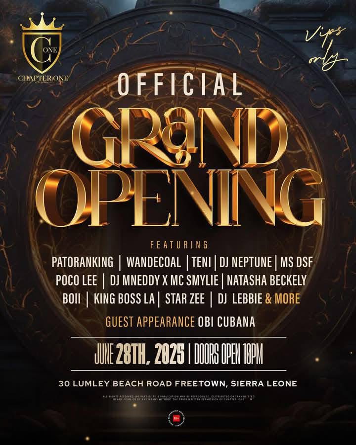 The management of Chapter One has expressed their enthusiasm for the event, encouraging Sierra Leoneans to prepare for what they describe as “the biggest nightlife experience in Sierra Leone.”