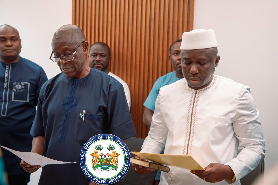 The President of Sierra Leone, Dr. Julius Maada Bio, has today, 13th June, 2025, presided over the official swearing-in ceremony of his newly appointed Secretary, Mr. Barba Brima Fortune at the Sierra Leone State House.