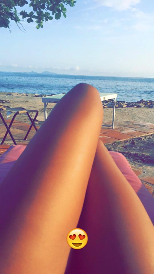The snaps show Rhage with tied up box braids in reflector shades posing by the sea for a selfie, in shorts and a vest. In another photo of the singer, she teased with a love eyed emoji pasted on her thighs with the sea in view.