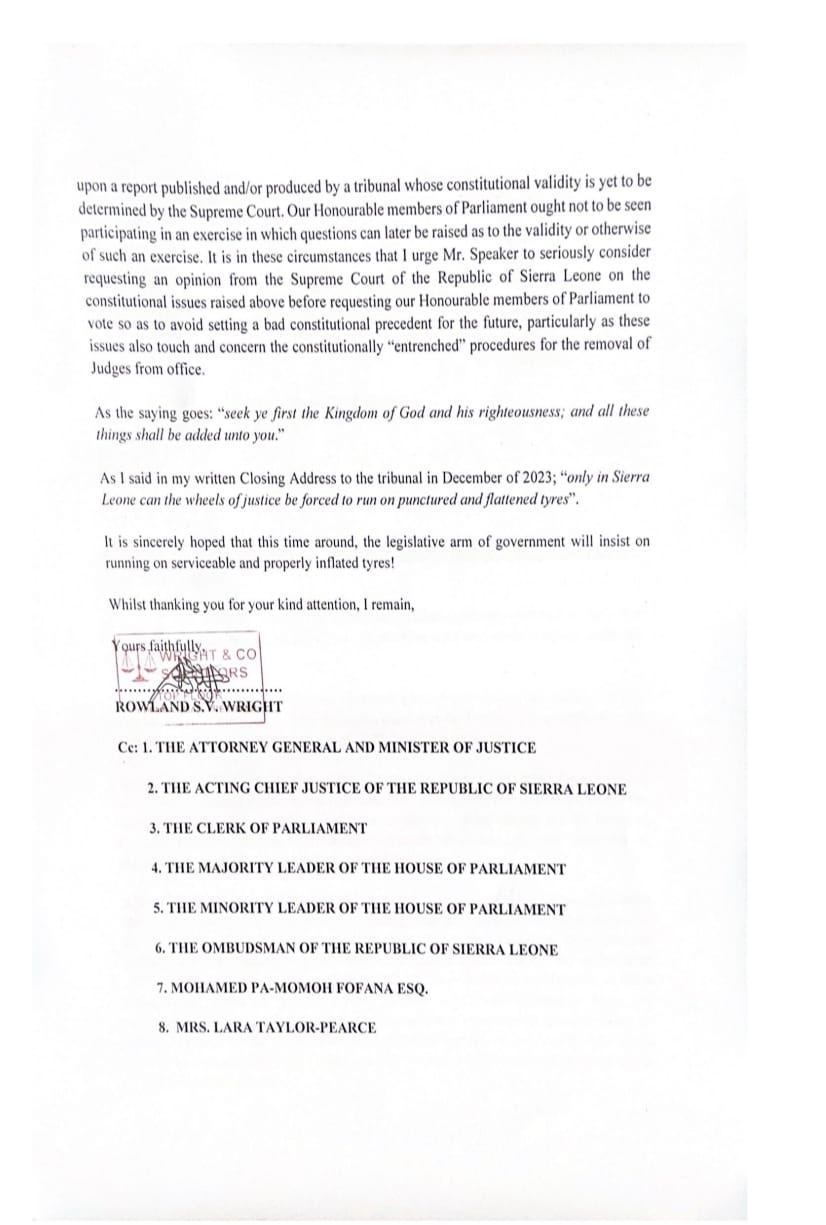 The tribunal continued its investigation without Supreme Court adjudication, and despite assurances, Wright and his client have yet to receive a copy of the tribunal’s report, which was presented to President Bio on June 12, 2024. Wright stressed that without the report, they cannot make any further legal applications.