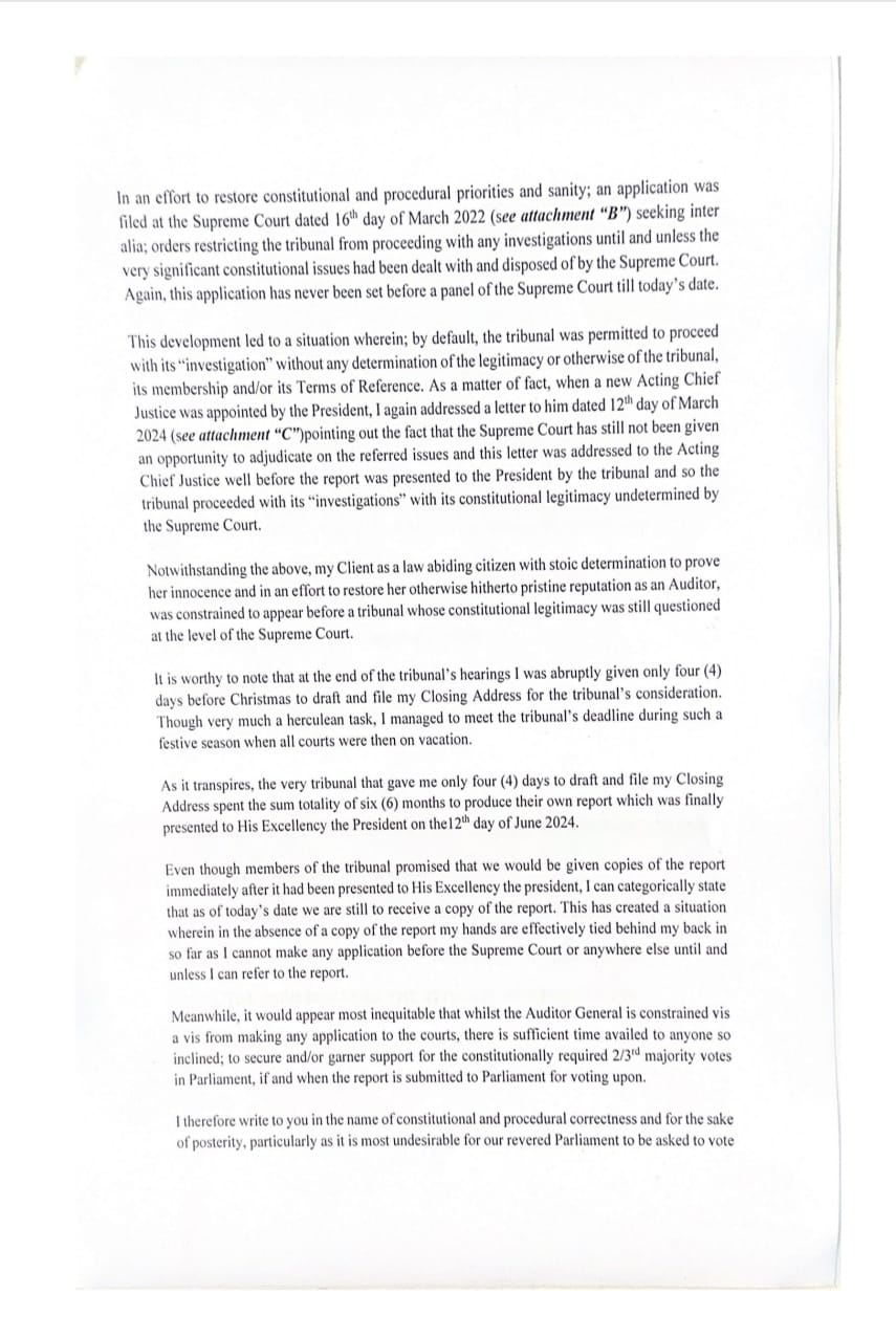 In his letter, Wright expressed concern over the tribunal’s constitutional legitimacy. He noted that after the suspension of Lara Taylor-Pearce, the President established the tribunal on November 17, 2021. Wright had previously raised issues about the tribunal’s establishment, composition, and terms of reference, which he argued were ultra vires the constitution. Despite his efforts, including filing an urgent application to the Supreme Court on December 20, 2021, these issues have not been addressed, leaving the tribunal’s constitutional validity in question.
