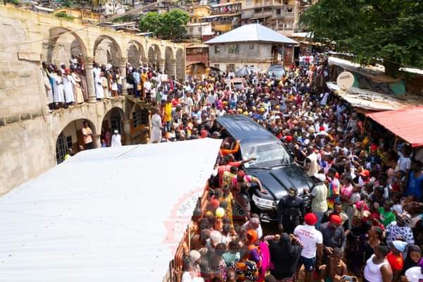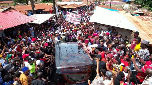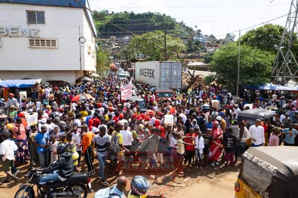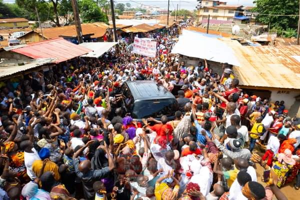 In the morning hours before the Jumma prayers , the whole coconut farm was filled with Muslims and supporters of the APC. Before Samura Kamara with his entourage, there was a heavy traffic from the Benze garage junction to Mount Aurel. Samura Kamara’s arrival painted the community red and white.